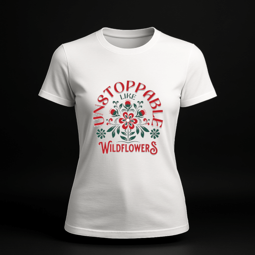 A graceful yet powerful t-shirt celebrating resilience and growth. Featuring floral artwork and the message “Unstoppable Like Wildflowers”, this tee blends comfort with quiet confidence.