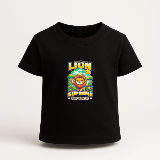 Bring smiles and confidence to your child’s wardrobe with our Lion Supreme – Roar with Joy Kids T-Shirt. Designed with a cute, friendly lion illustration and bold typography, this t-shirt celebrates happiness, courage, and joy. The colorful jungle-themed artwork paired with a cheerful sun and greenery makes this tee visually exciting for kids. Crafted from soft, breathable cotton, it ensures all-day comfort whether your little one is playing, learning, or exploring the world. Perfect for everyday wear, gifting, or special outings, this t-shirt lets kids express joy in style